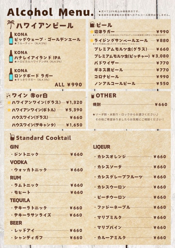 ドリンクメニュー