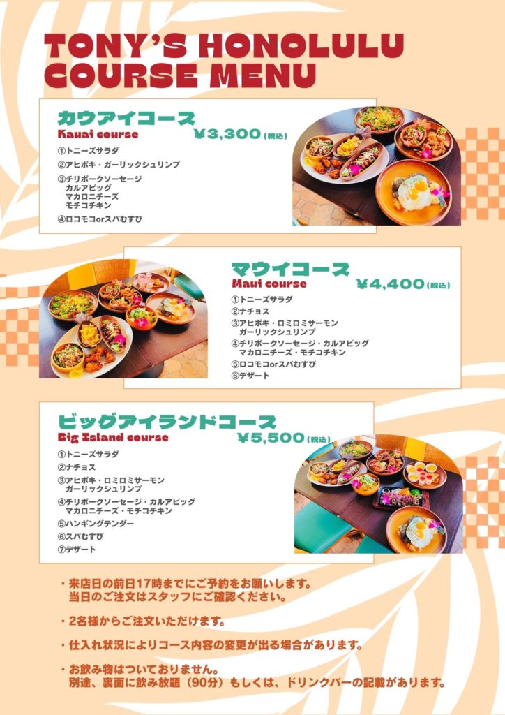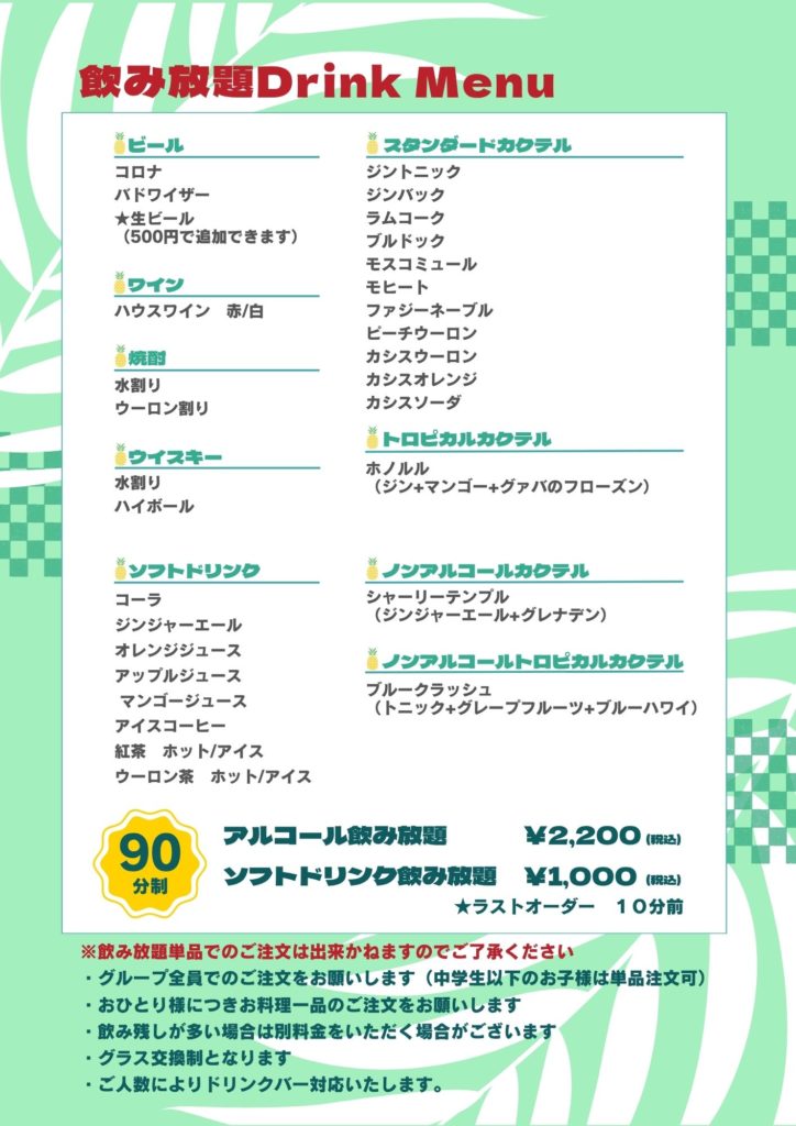コースメニュー&飲み放題メニュー